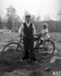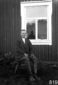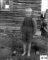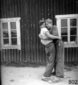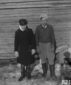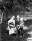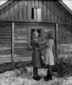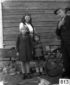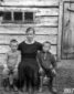 Aino Hiltunen (os. Korhonen) ja pojat Reino ja Erkki Hiltunen Oriniemen navetan seinustalla, Kajoo